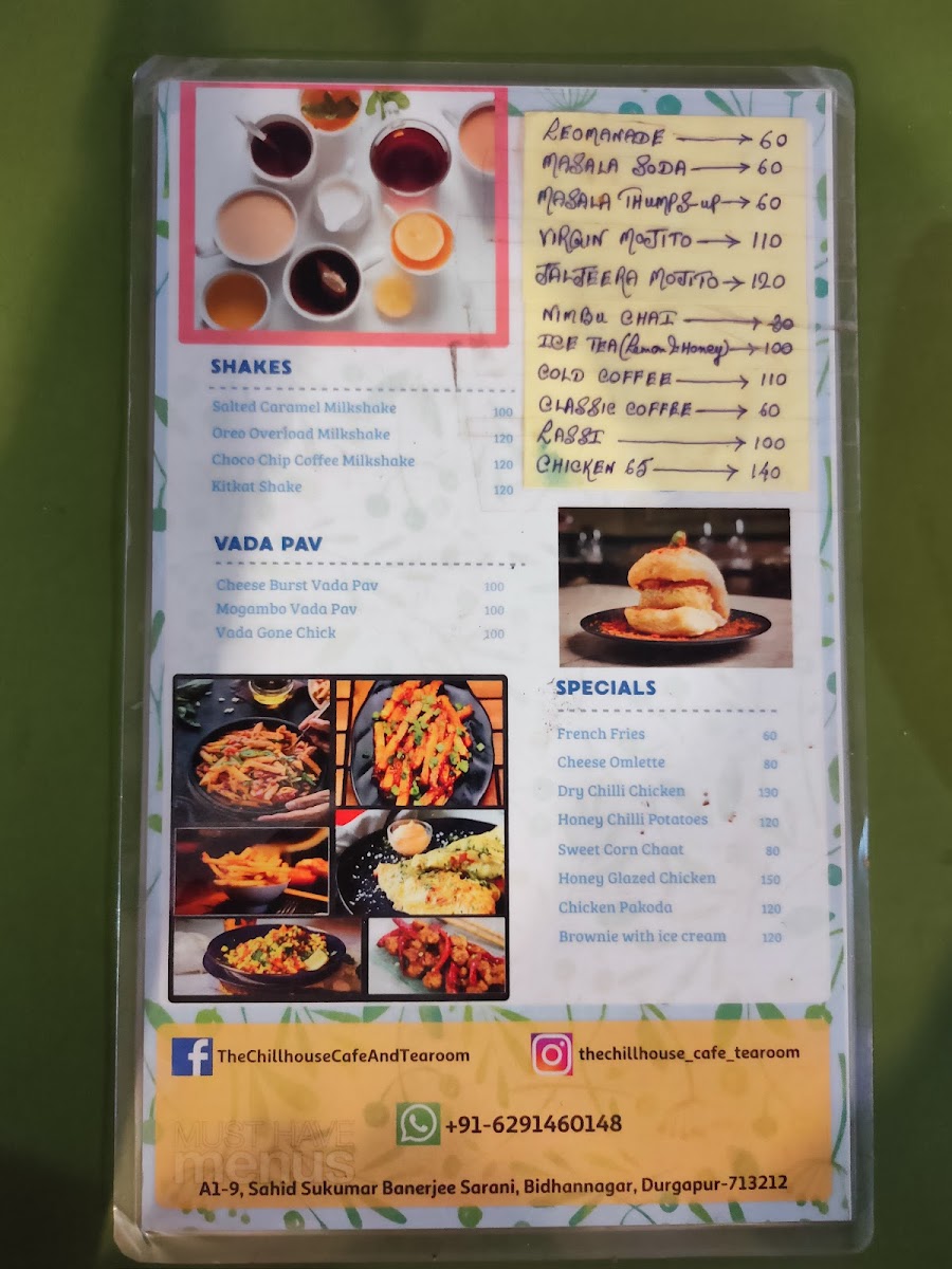 Welcome to The Chillhouse Cafe & Tearoom, a cozy retreat located in Aranyak, Durgapur, ideal for leisurely hangouts. The menu offers a delightful array of dishes, featuring delectable momos such as Darjeeling Spicy Veg and Smoked Chicken. For those with a sweet tooth, their shakes—like the Oreoverload and Kitkat Shake—are a must-try.